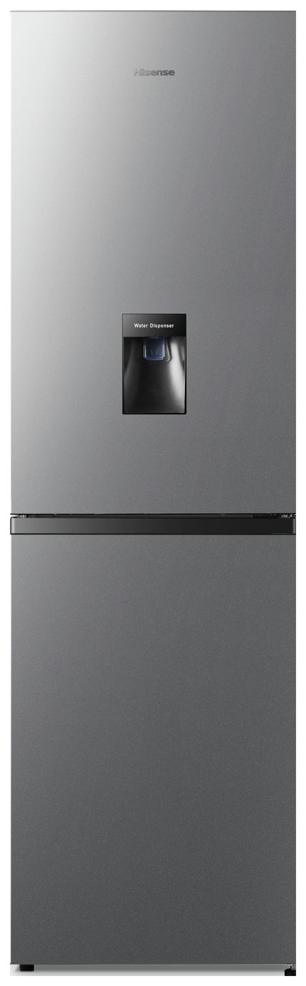 The Hisense RB327 series with Total No Frost technology evenly distributes cold air inside, helping to stop ice and water from building up. It’s built-in water dispenser lets you enjoy a refreshing glass of chilled water any time with no fixed water connection needed. The 90 door design lets you pull out the drawers fully and to help best suit your kitchen layout, the doors can be reversed allowing you to swap them around. The wine rack holds up to 5 bottles whilst the soft internal LED light lets you see everything in the fridge clearly. . Total No Frost – Total No Frost technology circulates cold air evenly throughout the fridge freezer to prevent ice crystals from forming, so there’s no need to ever manually defrost. . Non-Plumber Water Dispenser – A sleek water dispenser that seamlessly integrated to the flat door of the refrigerator. Just pour fresh water in the water tank and enjoy it perfectly chilled, anytime. . 90 degree opening – In a tight space, with the 90 opening you can access the all the drawers hassle free. . Overview: Size H182.4, W55, D56.2cm.; 250 – 299 litres.; Includes 4 wheels.; Total no frost.; Rear panel material: metal.; Manufacturer’s 2 year guarantee.; Door(s) open on both sides.; Door(s) open to 130 degrees.; Reversible door.; Controls: Electronic temperature control.; Performance: 12 hours power failure safe storage.; Operating temperature 10 to 38°C.; Energy efficiency class: E.; Annual energy consumption: 226kWh.; Airborne aciustical noise emissions: 37dB.; Noise emission class: C.; Star rating: 4.; Fridge specifications: Fridge capacity 171 litres.; 2 shelves (glass).; 10cm door depth.; Depth of door storage: 10cm.; Capacity of wine rack 4 bottles.; 1 dairy compartment.; 1 salad crisper compartment.; Egg tray.; Non plumbed water dispenser.; Chilled food capacity: 171Litre.; Internal light.; Freezer specifications: Frozen food capacity: 85Litre.; Freezer capacity 85 litres.; Freezer at bottom.; 85 storage compartments.; General information: High temperature warning facility.; 1.5m cable length.; 10cm space recommended behind unit.; Please allow 12 hours for the unit to settle.; EAN: 6921727076045.; Boxed size H188.7, W58, D58cm.; Boxed weight 56kg.
